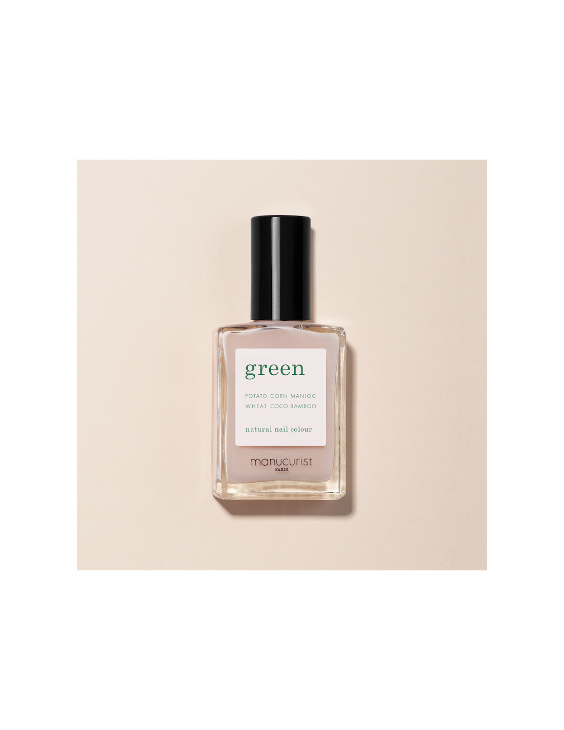 Préparez vos ongles en appliquant 1 couche de base, puis appliquez 2 couches de couleur GREEN. Laissez sécher avant d’appliquer une légère couche de Top Coat.