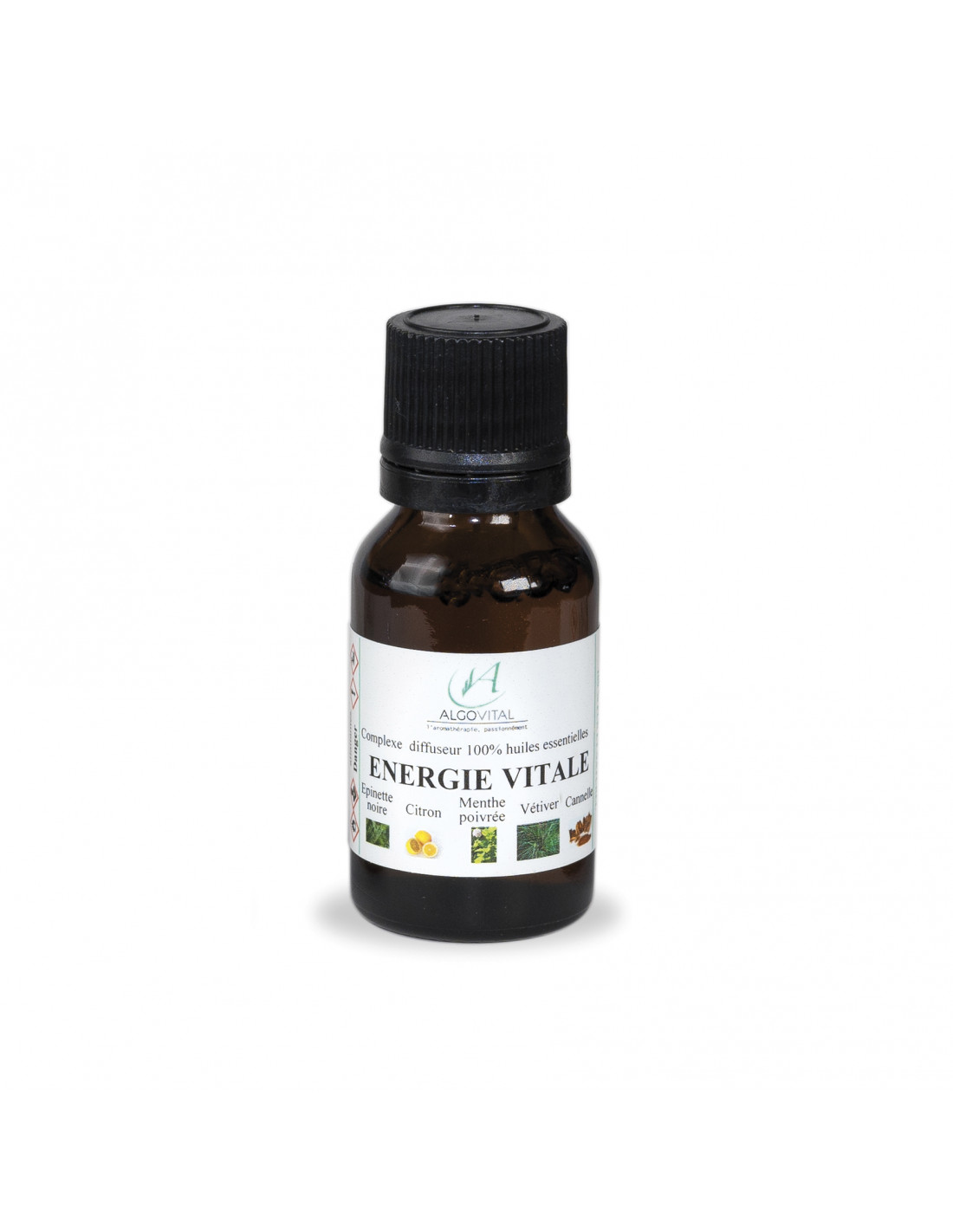 Huiles Essentielles d’Epinette noire, citron, vétiver, menthe poivrée et cannelle.