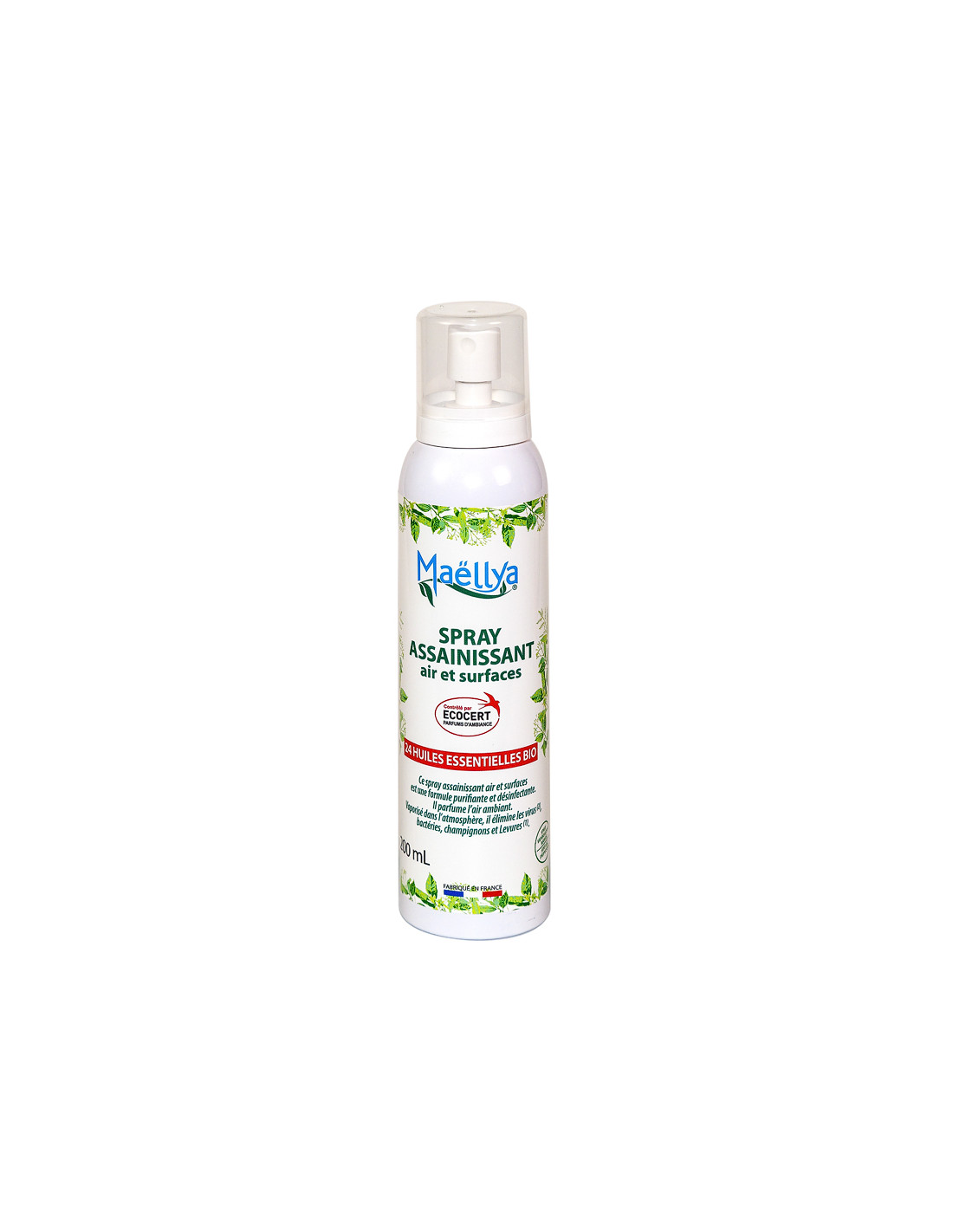 Alcool denat, eau, huiles essentielles de Cèdre atlas*, d’Orange douce*, d’Eucalyptus globulus*, de Citron zeste*, de Menthe verte*, d’Arbre à thé*, de Petit grain bigaradier*, de Pin sylvestre*, de Niaouli*, de Lavande officinale*, de Laurier noble*, de Basilic tropical*, de Romarin à camphre*, de Lavandin grosso*, de