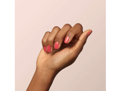 ethyl acetate, butyl acetate, nitrocellulose, hydroxyethyl acrylate/IPDI/PPG-15 glyceryl ether copolymer, acetyl tributyl citrate, isopropyl alcohol, bis-HEMA poly(1,4-butanediol)-9/IPDI copolymer, stearalkonium bentonite, ethyl trimethylbenzoyl phenylphosphinate, CI 77891 (titanium dioxide), CI 77491 (iron oxides), diacetone alcohol, silica, CI 73360 (red 30), BHT, CI 15850 (red 7 lake), phosphoric acid, CI 77499 (iron oxides), CI 19140 (yellow 5 lake).